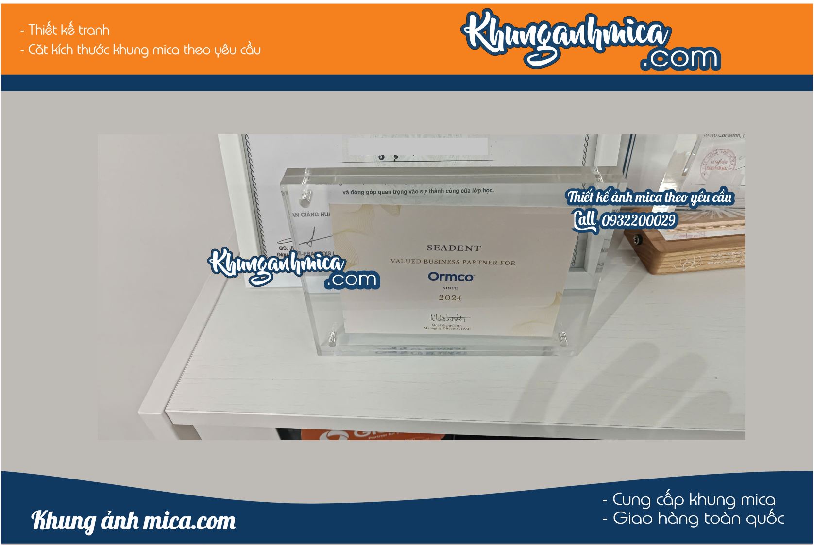 - Chất liệu mica cao cấp: Được chế tác từ mica trong suốt, khung mang lại vẻ sáng bóng và sang trọng, giúp hình ảnh bên trong được hiển thị rõ nét.