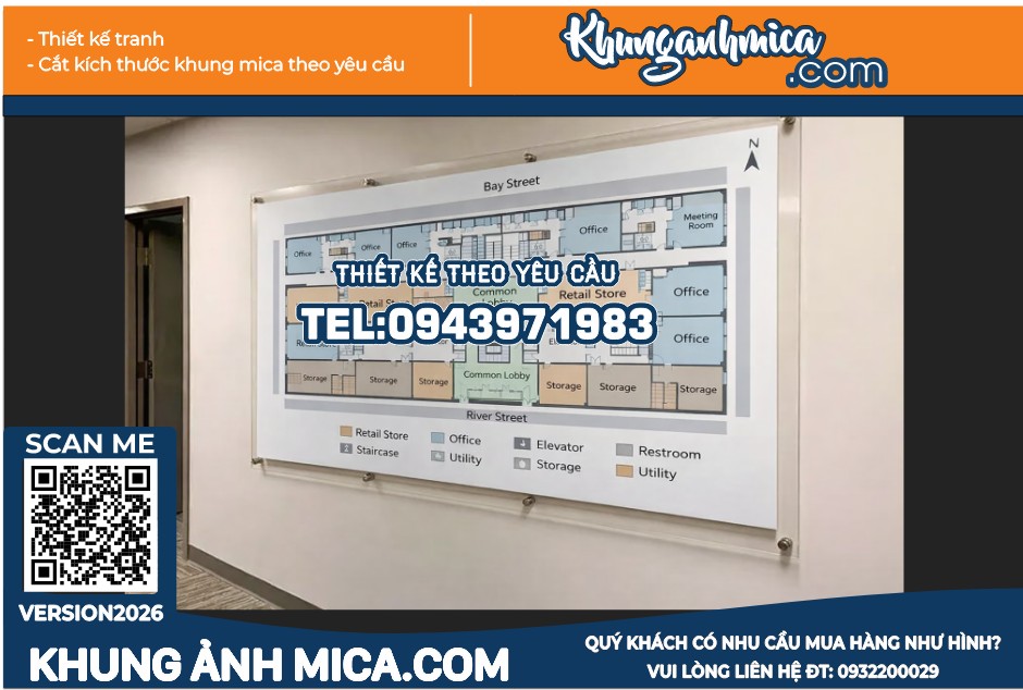 Nếu bạn cần một giải pháp hiển thị sơ đồ, bảng chỉ dẫn rõ ràng và bền đẹp, thì khung mica treo poster kích thước lớn chính là lựa chọn lý tưởng. Không chỉ nâng cao tính thẩm mỹ, sản phẩm còn giúp tối ưu trải nghiệm người xem trong mọi không gian.
