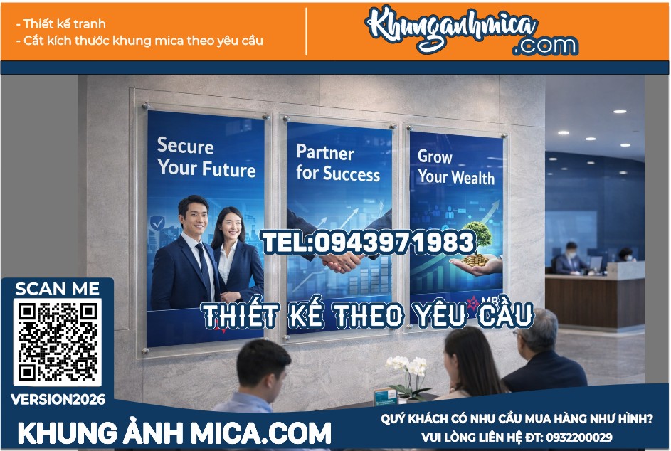 Ngoài ra, bạn có thể kết hợp cùng khung mica treo tường, khung poster mica, khung mica quảng cáo, khung treo poster khổ lớn, khung mica A0 A1, khung mica trưng bày để tối ưu hiệu quả hiển thị.